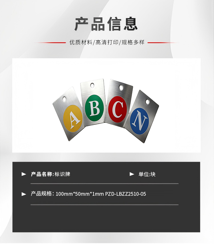 A黄B绿C红 相序牌100mm*50mm*1mm PZD-LBZZ2510-05不锈钢方形 1块/块