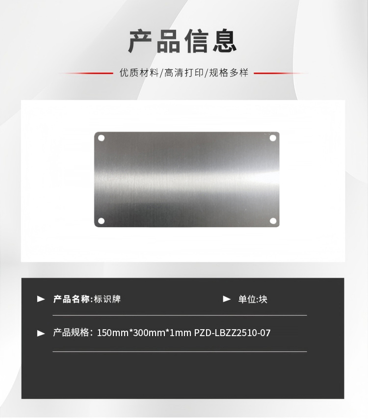 金属标识牌150mm*300mm*1mm PZD-LBZZ2510-07不锈钢方形 1块/块
