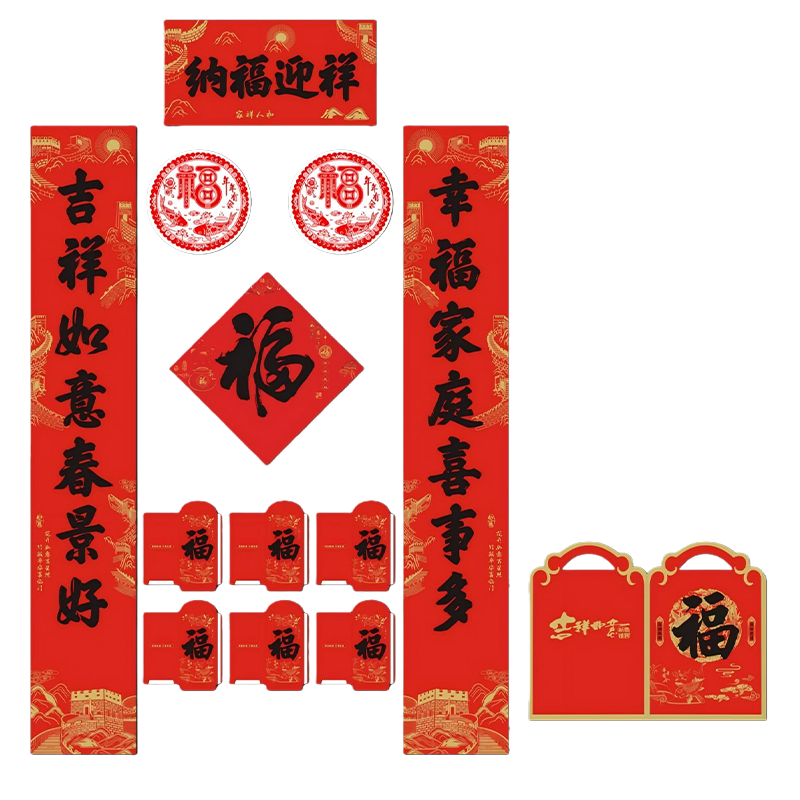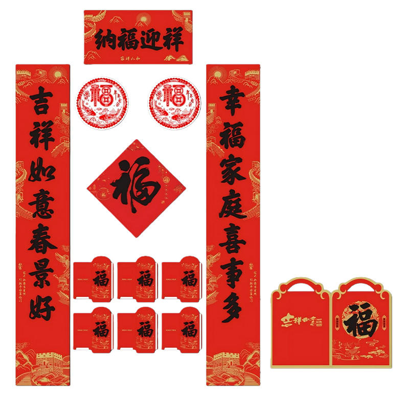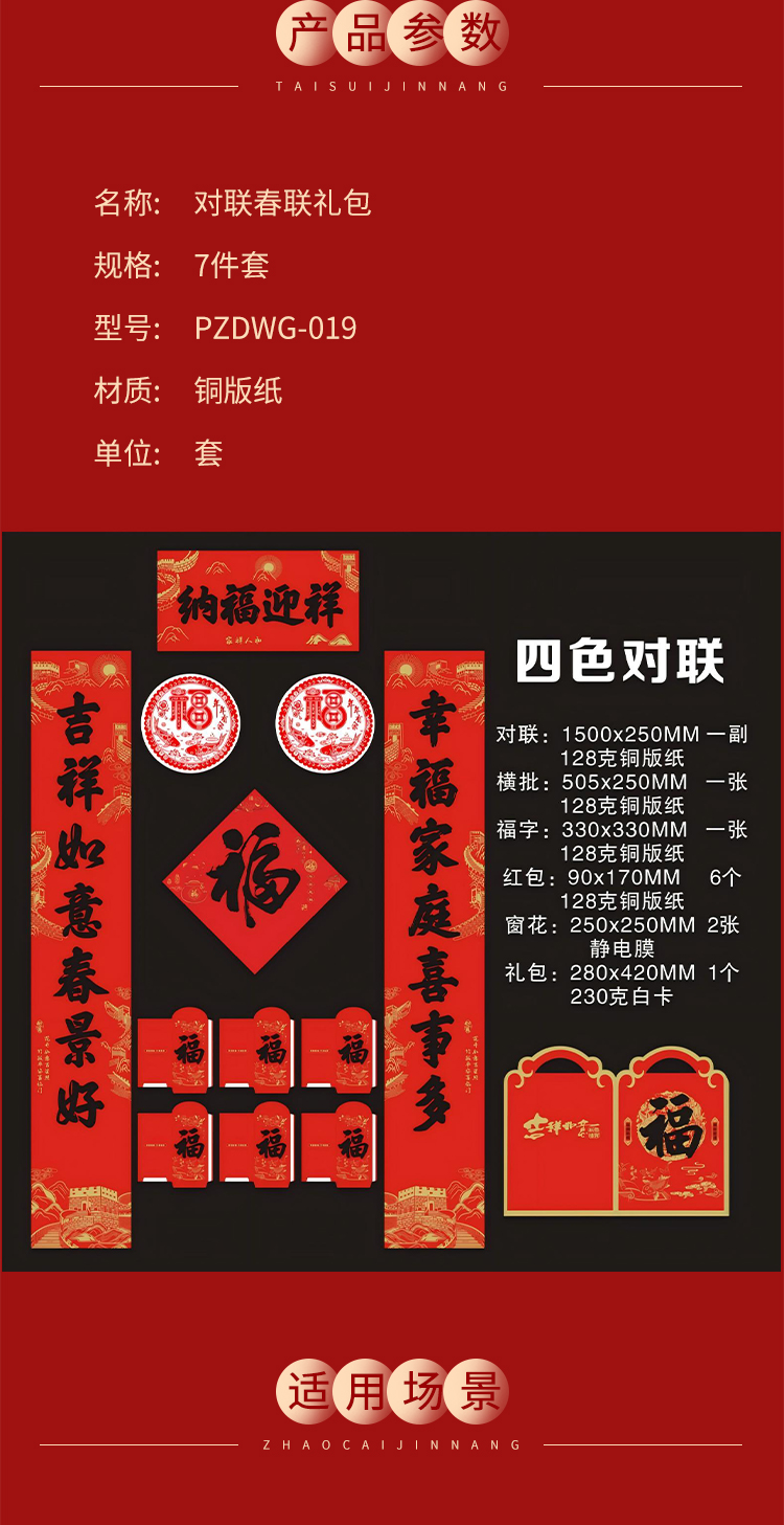 派智达 对联春联礼包 PZDWG-019 7件套 对联1500x250MM横批505x250MM 铜版纸 红色 1套